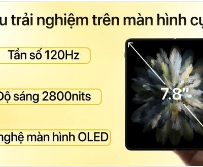 | Tính năng màn hình | Màn hình chính: 7.82 inches, 2K+ (2268 x 2440 Pixels), OLED, 120Hz, 2800 nit, 1 tỷ màu, Kính UTG Màn hình phụ: 6.31 inches, FHD+ (1116 x 2484 Pixels), 120Hz, Kính siêu mỏng Nanocrystal |